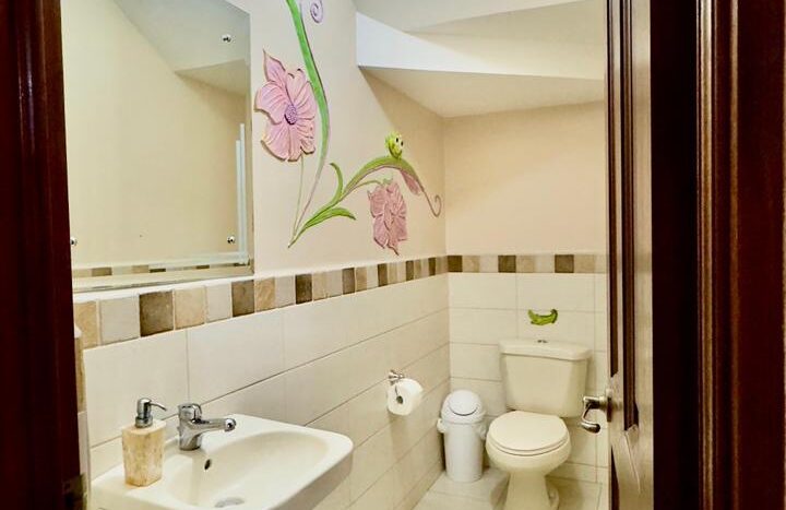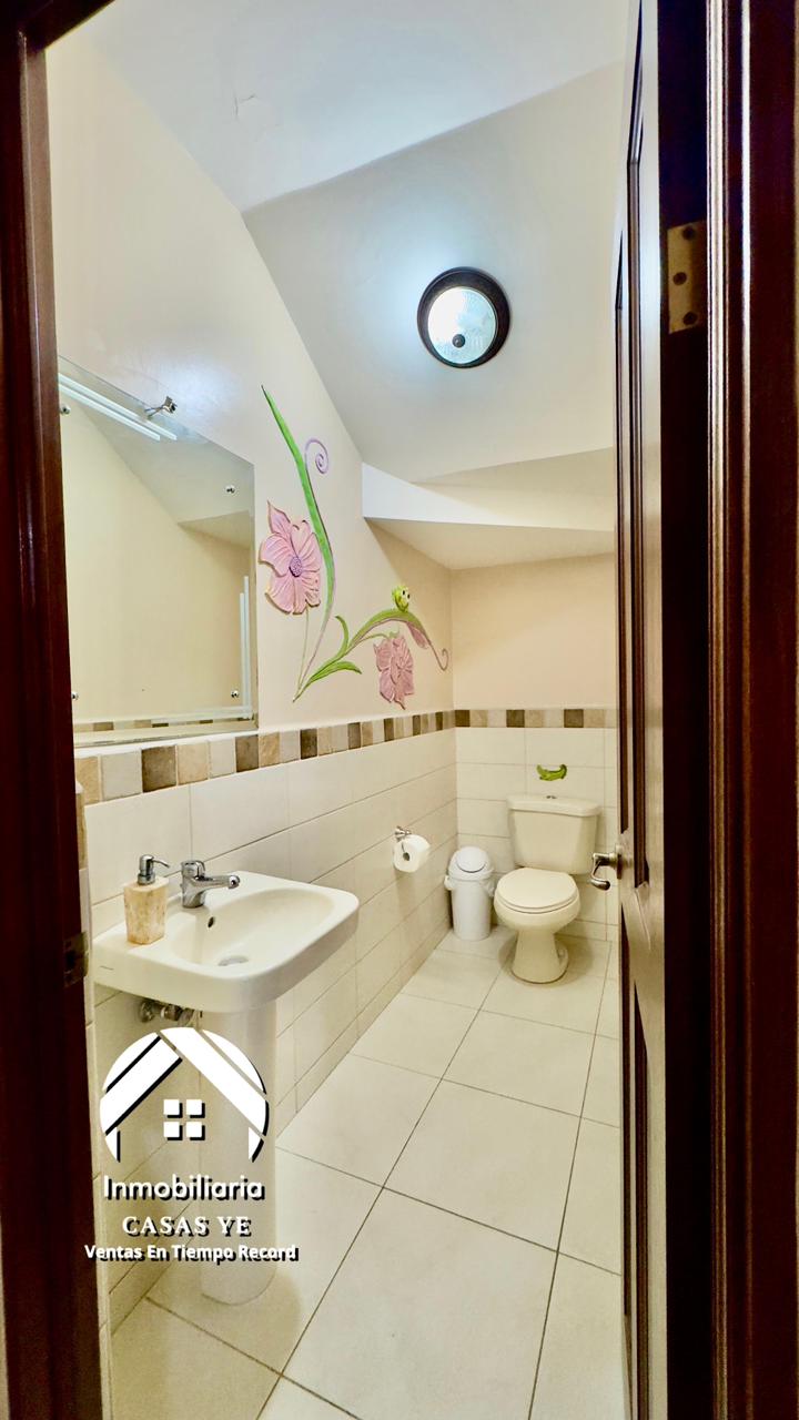 2.5 baños (2 completos arriba, medio abajo).