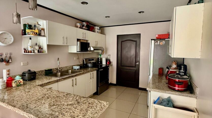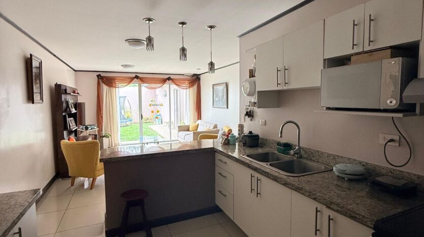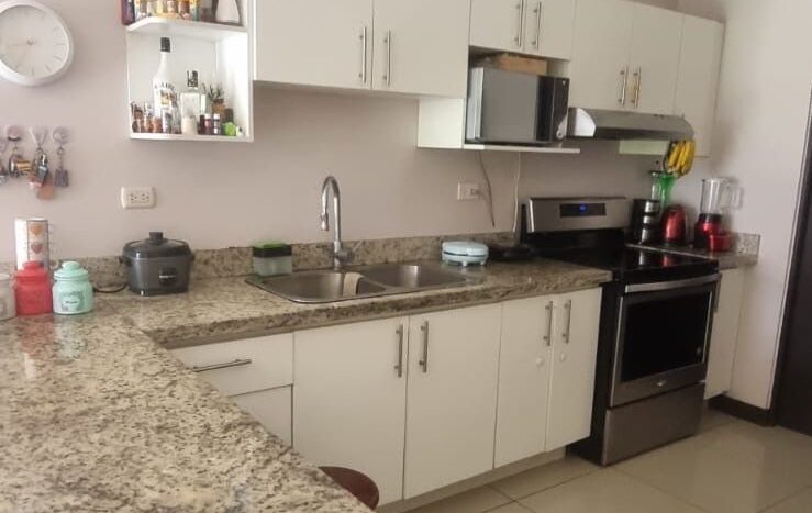 Cocina con muebles sobre de granito